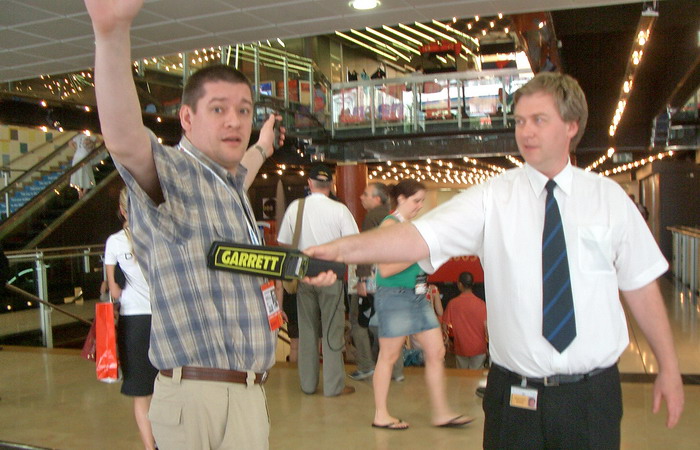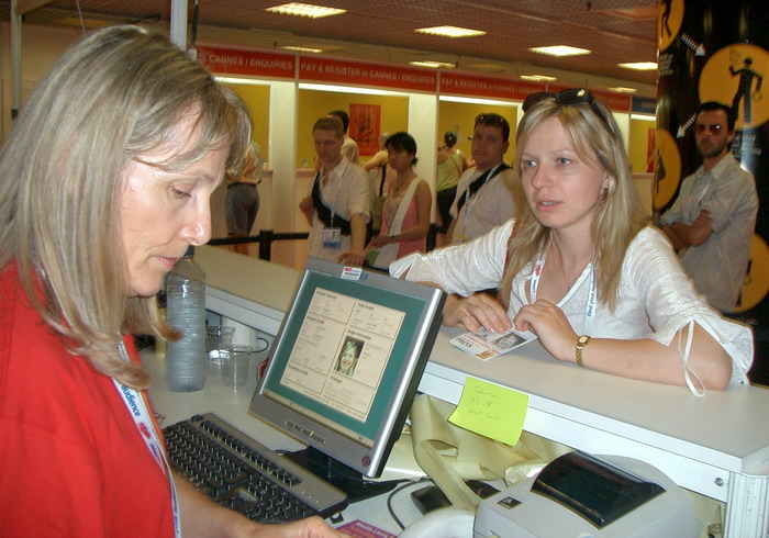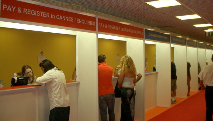 Система регистрации делегатов на Cannes Lions весьма похожа на систему регистрации авиапассажиров. Только не сдаешь багаж — а, наоборот, в конце процесса регистрации получаешь сумку с материалами фестиваля. На входе всех тщательно обыскивают, затем делегатов встречают справочная служба и около десяти стоек для различных категорий аккредитованных. Есть стойка Golden Guests — для почетных гостей, стойка для прессы, аж шесть стоек с надписью Confirmed Registrations (Подтвержденная регистрация) — для тех, кто оплатил участие заранее, и четыре стойки аккредитации за наличные.