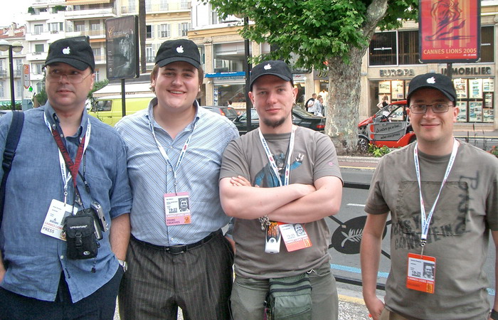 Правда, в другой раз повезло. Перед окончанием одного из фестивальных дней промоутер фирмы Apple, видимо, устал продвигать компанию и раздал всем желающим фирменные бейсболки просто так, чтобы не тащить их в гостиницу. И мы, присутствовавшие при этом, взяли по бейсболке. В общем, получилась неплохая группа поддержки фирмы Apple.