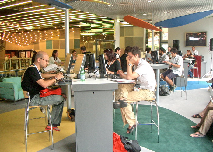В оргкомитете Cannes Lions работает немало народу и каждый занят своим делом. Показы роликов и семинары идут одновременно в 6-10 залах, работает интернет-кафе, киоск фестивальных сувениров, пресс-центр, стенды различных общественных рекламных организаций, каждый день выходит цветная и толстая фестивальная газета Lionsdaily — я бы даже назвал ее журналом.