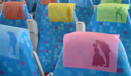 На голубом подголовнике изображен человек, играющий в гольф. Это, наверное, они для иностранцев сделали. У нас в Сибири гольф пока не очень популярен. Хотя, сибиряк может решить, что мужчина с клюшкой — хоккеист. Шучу.
