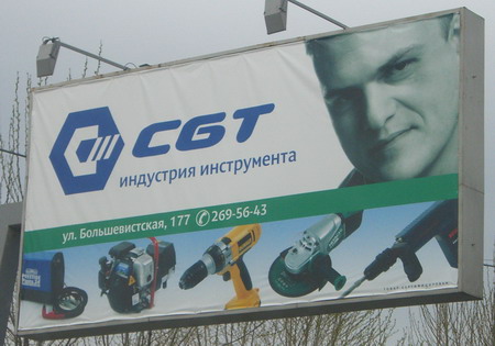 Езжу мимо этого щита и все время думаю, что на нем написано: CGT или CBT? Хотя, в любом случае марка мертвая. В категории инструментов аббревиатуру уж точно никто не запомнит. По крайней мере через рекламу.