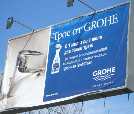 Раньше я не знал, как правильно читать слово GROHE. Грохе или Грох? А теперь догадался, правильно будет Грое. Иначе не в рифму. А так — все гладко: «Трое от Грое».