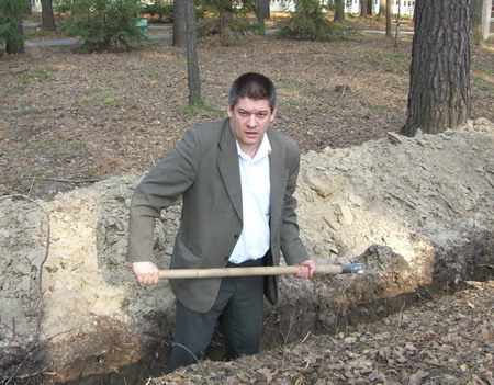 Правда, дойти до площадки будет нелегко. Весь санаторий перекопан канавами. Кабель кладут. (Или это окопы роют?!)