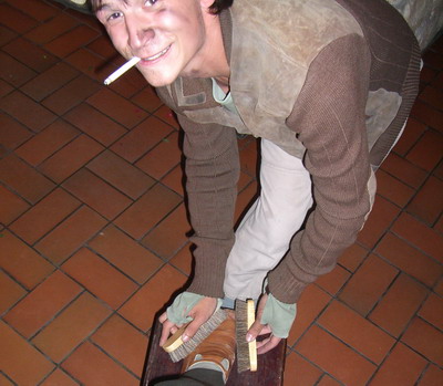 На входе всех встречал мальчишка-чистильщик и мафиозного вида братки.