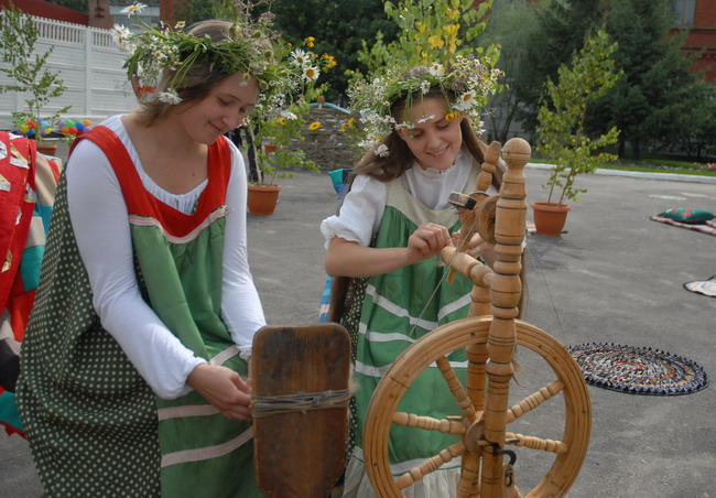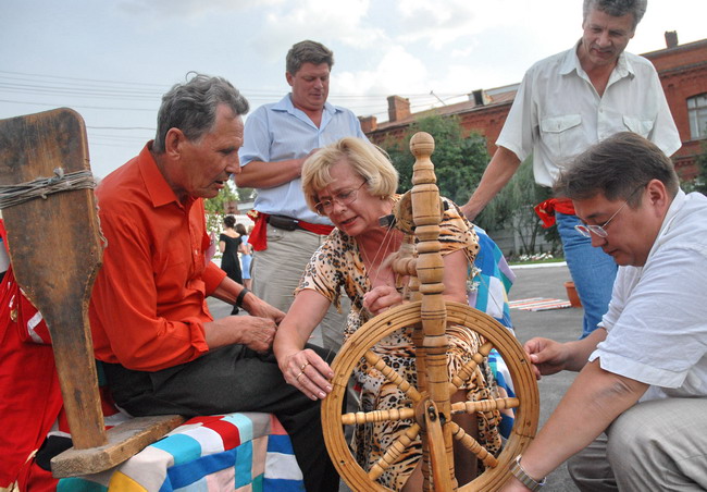 Среди гостей нашлось много желающих почувствовать себя в роли крестьян или просто подурачиться.