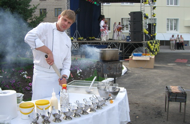 А вот шашлыки и пельмешки прошли менее заметно, поскольку точка их производства не была оформлена в народном стиле. Обидно.