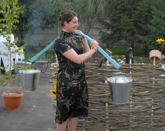 Поскольку ожидалось много гостей-иностранцев, решено было что официанты, аниматоры и даже организаторы должны быть одеты в русские народные костюмы. Ну, или в костюмы, которые иностранцы могут принять за русские. Площадка также была оформлена в русском стиле, музыканты исполняли народные мелодии, и меню тоже было русским. Но это я уже слегка забежал вперед. В общем, стилизованность под «русскость» была максимальной.