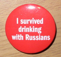 Сегодня будет русская вечеринка, и каждый ее посетивший получит вот такой замечательный значок. Известный русский поэт (а по совместительству — чрезвычайный и полномочный посол «Золотого Барабана» в России) Влад Васюхин переживает, боится, что вечеринка плохо пройдет.
