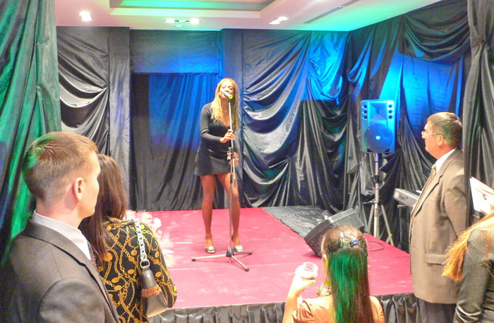 Народу на вечеринку пришло до тесноты много, человек двести. Причем, половина была из тех, что я встретил на вчерашнем мероприятии. На фото Лена Олейникова.