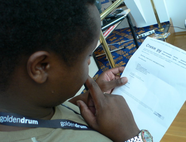Бенжамину, досталось четверостишие про любовь. Ходит теперь афромосквич с бумажкой, учит: