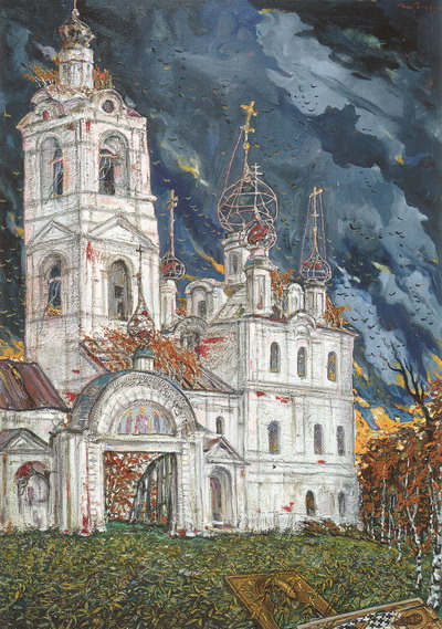 Картина 2003 года «Коммунисты прошли» вызывает в памяти классическое полотно Аркадия Пластова «Фашист пролетел». Обратное неверно.