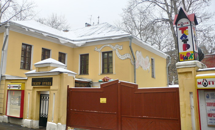 …и идите вниз по кривому переулку до желтенького двухэтажного зданьица кукольного театра. Я лично привык к тому, что здания кукольных театров имеют внушительные или хотя бы средние размеры. «Всё лучшее детям!». Но здесь театрик московский областной и, видимо, поэтому маленький, игрушечный, кукольный. Театр находится в Пестовском переулке.