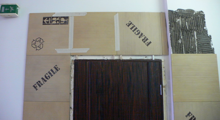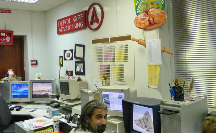 Леша повел меня на четвертый этаж, где уже завершаются отделочные работы. Вход в новый офис отделан керамической плиткой, имитирующей картонную гофротару. Леша нашел эту плитку по какому-то редкому испанскому каталогу и очень много заплатил за то, чтобы вход в новый офис выглядел, как коробка от холодильника. «Посетители сразу должны понять, что мы упаковкой занимаемся». Нестандартное решение, смешное.