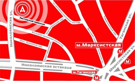 Надо выйти на станции метро «Марксистская» к торговому центру «Звездочка», обойти его слева и пойти по Большой Коммунистической улице в направлении церкви. Но не той, с маковками, которую вы видите на снимке. Поворачивать надо направо, навстречу потоку грязных машин.