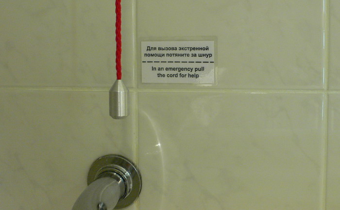 Лежа в ванной, я также размышлял о предназначении этого красного шнурка. Мне кажется, он для тех случаев, когда человек падает на кафель и хочет помощи.