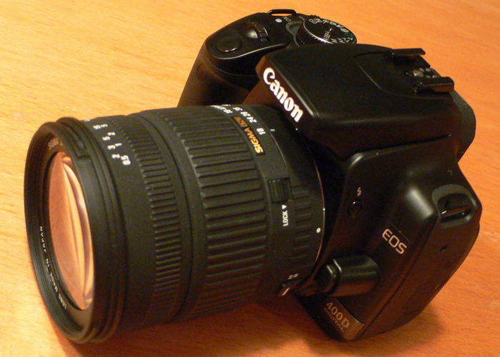 Я купил новый фотоаппарат. Пора, давно уже пора резко улучшить качество снимков. Так Canon 400D выглядит на фирменных сайтах в комплекте со стандартным объективом.
