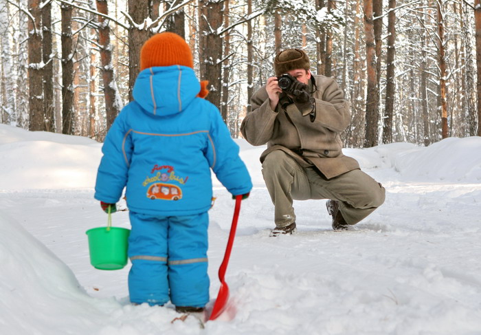 Модель терпеливо позировала нам, не обращая внимания даже на таких интересных голубей, но потом замерзла и захотела домой.