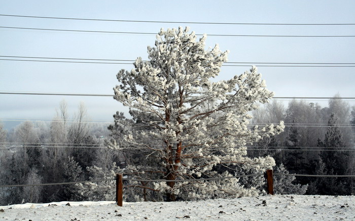 По пути удалось сфотографировать два красивых обледеневших дерева.