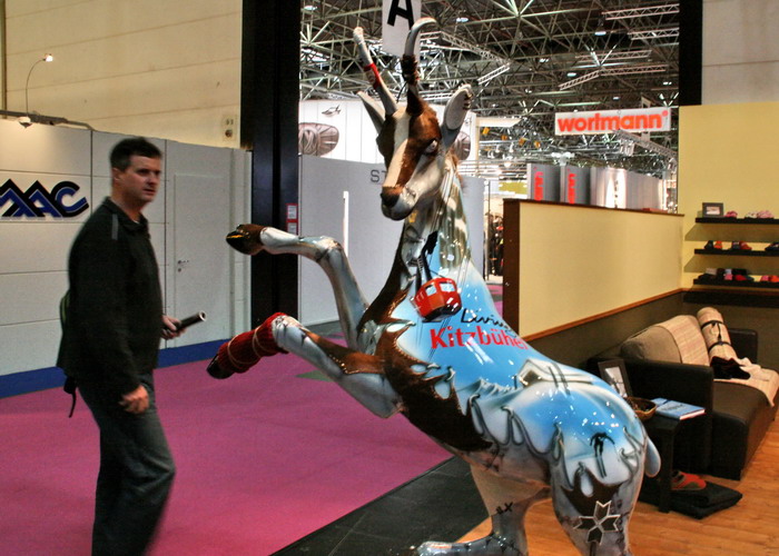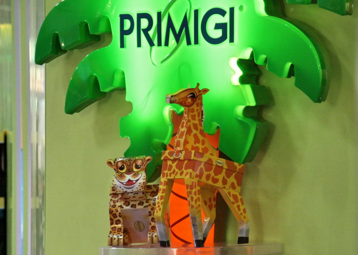 Фирма PRIMIGI поступила оригинально: всех тварей она мастерски превратила в коробки для своей обуви. Получается что-то вроде шоколадного яйца с игрушкой, только здесь игрушка снаружи. На стенд они меня не пустили, заметив два фотоаппарата, но снаружи я все снял.