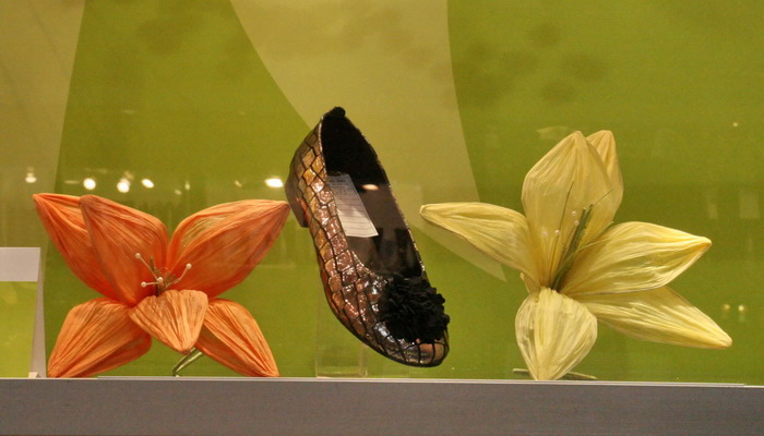Еще один излюбленный способ декорирования стенда — помещение товара в природную среду или среду использования. Создается ощущение натуральности обуви и ее органичности природе.