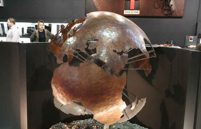 На стенде бренда Timezone находится медный же глобус.