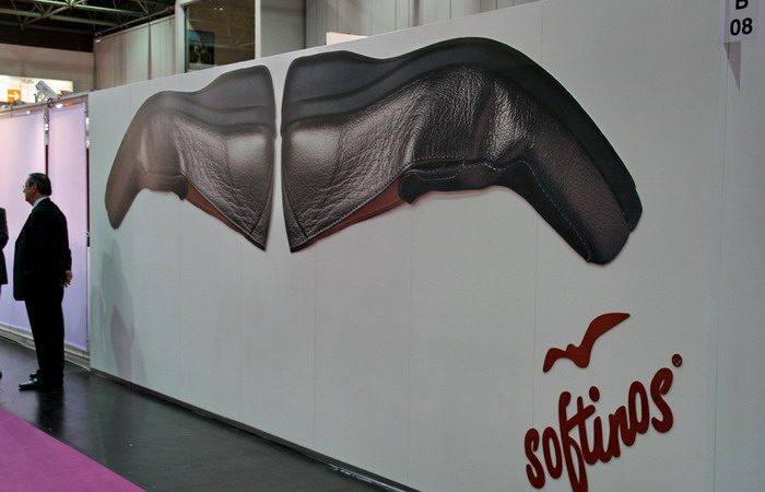 На внешней панели марки Softinos два полуботинка имитирующих ее товарный знак.