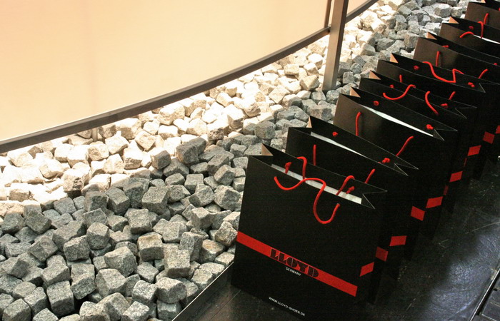 Lloyd — солидный немецкий бренд. В основание стенда засыпаны камни.