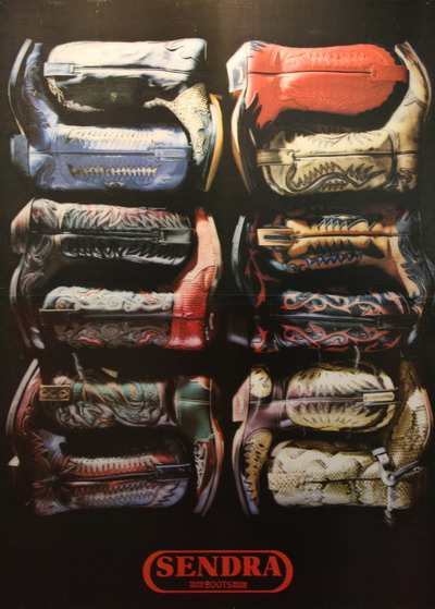 Марке SENDRA удалось компактно расположить 12 разных сапог на одном плакате, не превратив картинку в вульгарную скотобазу.