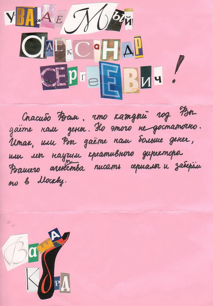 А что делать? С предыдущим творческим директором так и случилось, уехал в Москву и пишет сериалы. Придется дать денег.