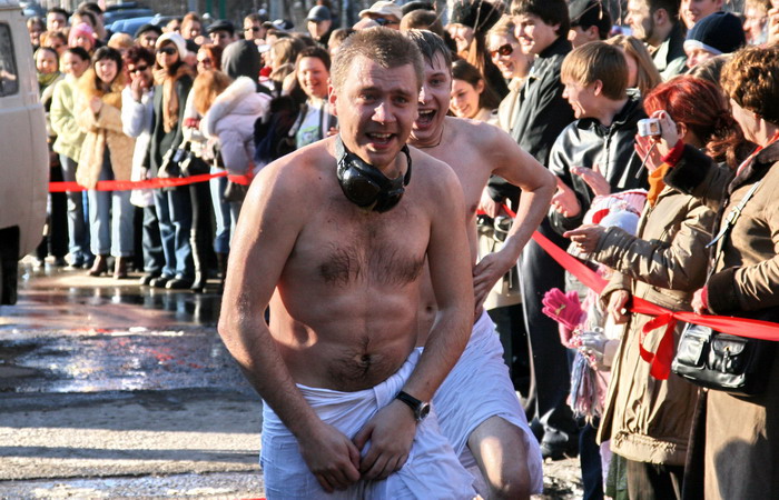 Восторг публики вызвала группа парящихся, приехавшая в бочке из-под кваса.