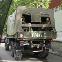 Сегодня снова обогнал тот же самый грузовик с солдатиками. Увидев, что я их фотографирую, они сильно развеселились. Видимо, отпускали шутки на мой счет, дай им бог здоровья.