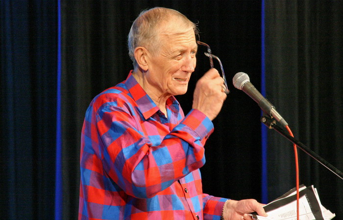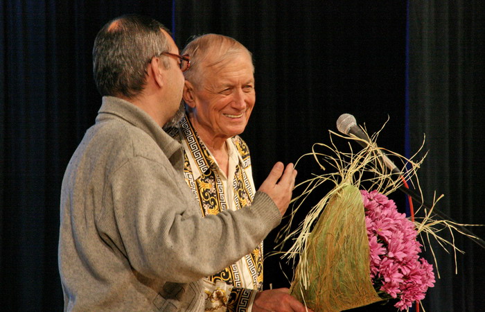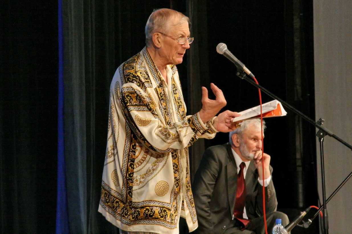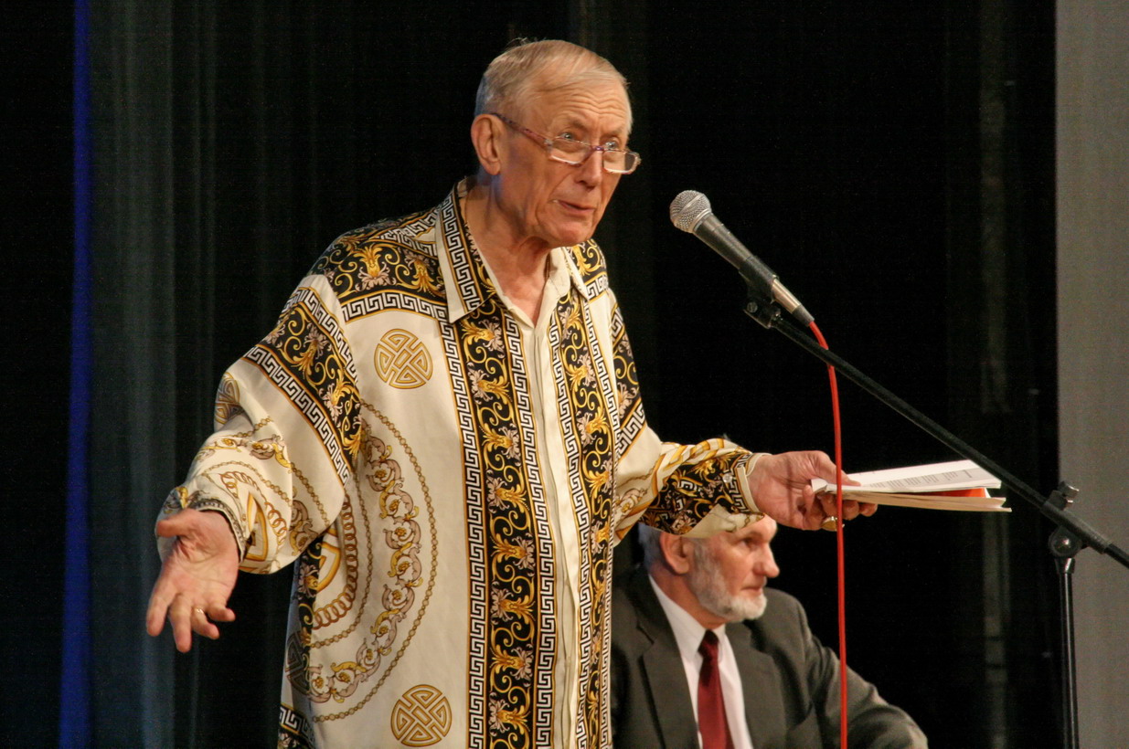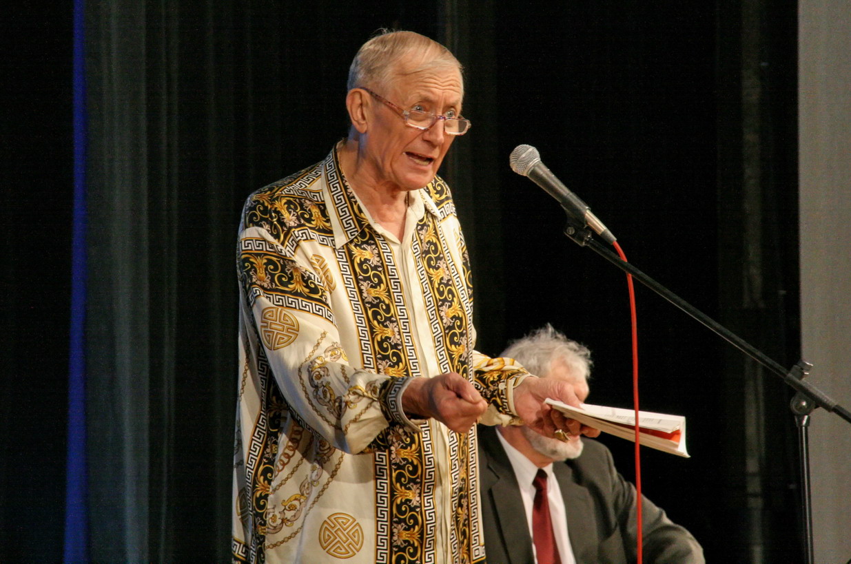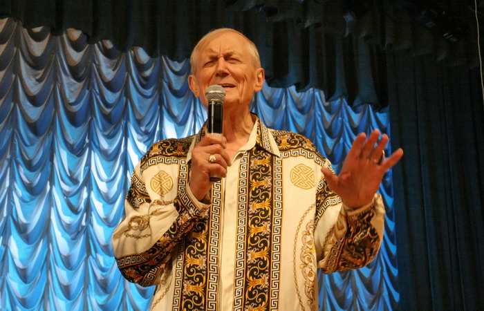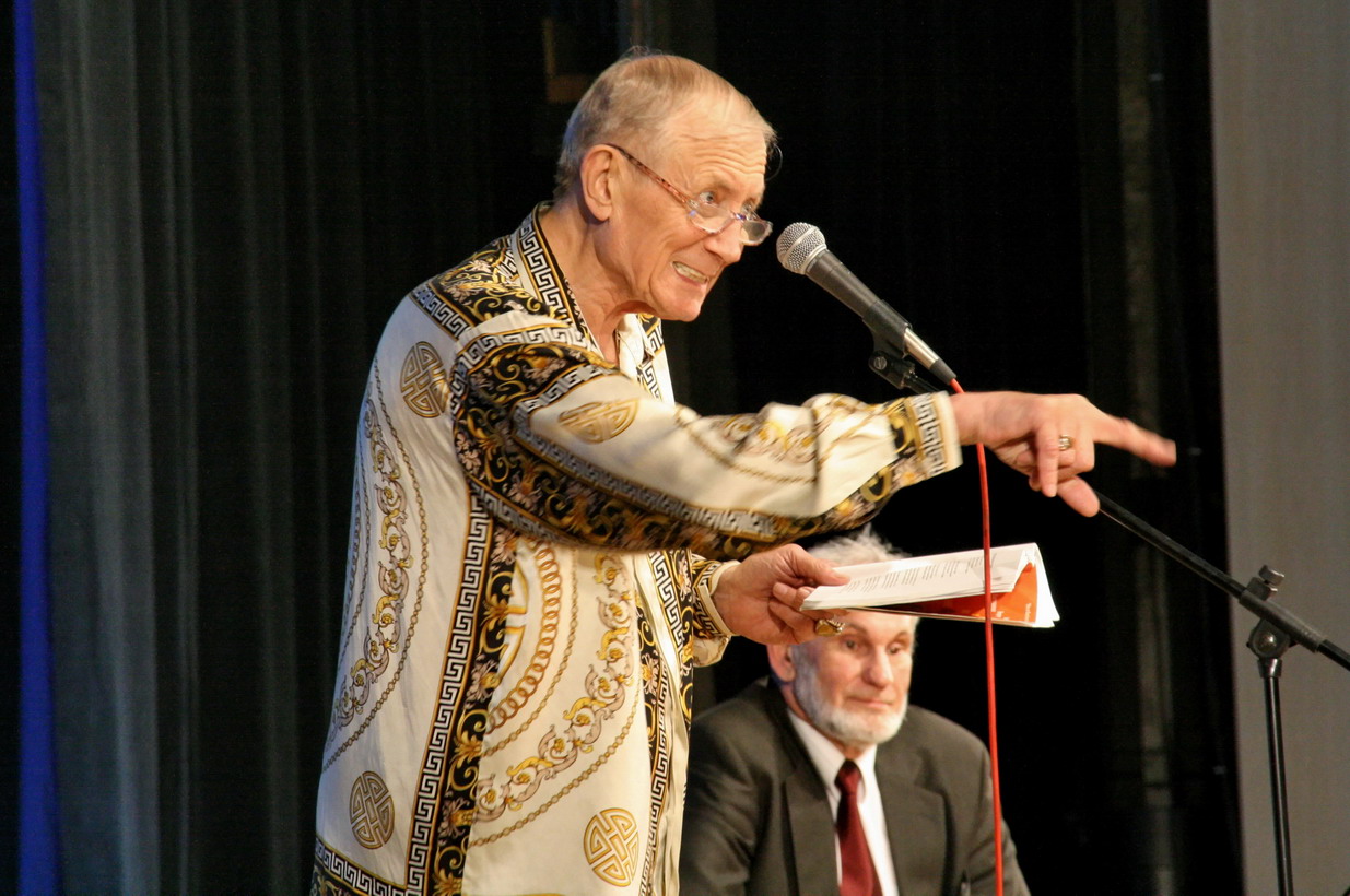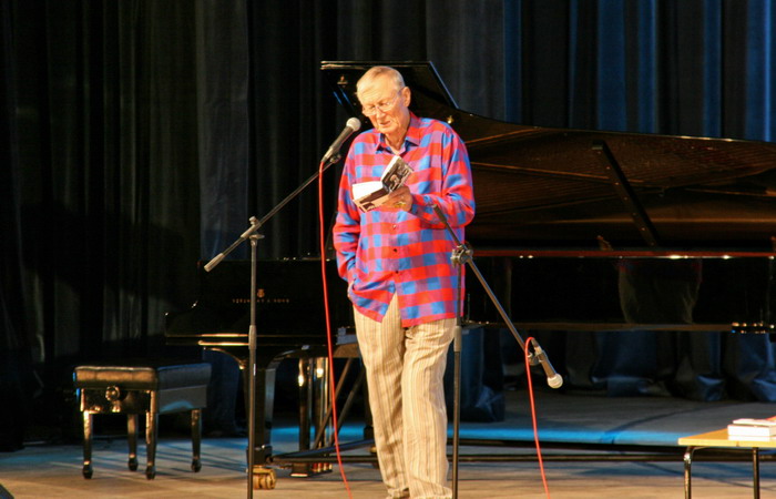 Несмотря на свои 74 года поэт задорен, подвижен и весьма артистичен. Дай бог каждому! Интуитивно или вполне сознательно он превратил свой двухчасовой литературный вечер в полноценное шоу. Конечно, за филипкиркоровым ему не угнаться, но в перерыве он, как положено, поменял свою веселую рубаху на другую, еще более веселую. Все по законам эстрадного жанра.