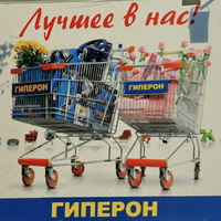 Гипермаркет «Гиперон», открывшийся полтора года назад, начал рекламную кампанию. Раньше у него был лозунг: Все и для всех. Теперь: Лучшее в нас.