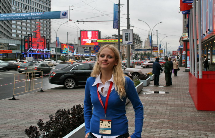 Около «Октября» встретил нашу недолгую сотрудницу Наташу Родикову. Молодую, красивую и оформленную в цветах мероприятия. Наташа оказывает посильную помощь оргкомитету ММФР. Но этого явно не достаточно, оргкомитет все равно совершает много ошибок. Аккредитация Володи Сергеева потерялась где-то в его глубинах и мы битый час потратили на то, чтобы извлечь ее из недр бухгалтерии.
