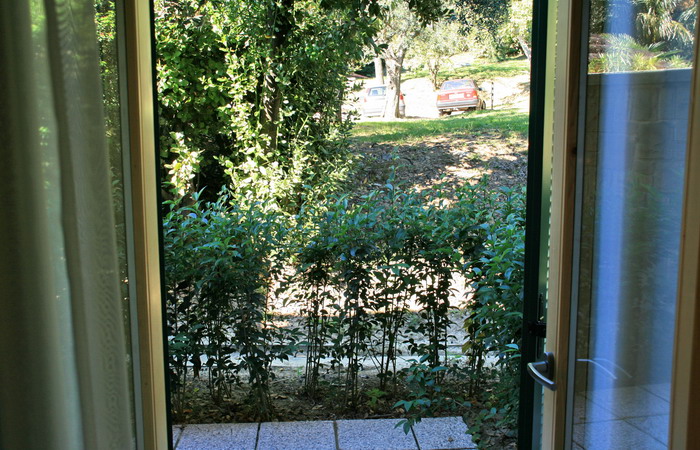 Вместо французского балкона у меня на этот раз был отдельный «выход на улицу». Правда, чтобы уйти совсем, пришлось бы продираться через живую изгородь. Почему-то за рубежом всегда радуешься удобному номеру, хотя бывать в нем приходится очень мало. Видимо, это свойственно человеческой природе.