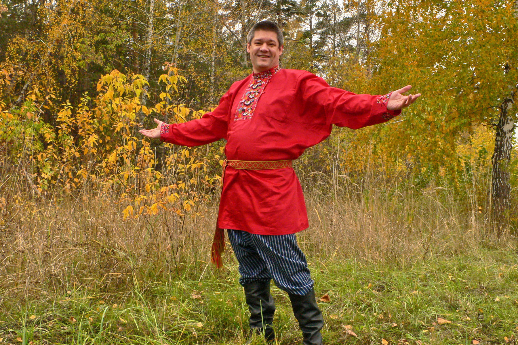 Вот так я выгляжу в этом аутентичном (запомнили слово?) костюме в полный рост. Настоящий старовер! Костюм я пошил не просто так, а с патриотической целью для гордости за Родину. Поеду я, значит, на рекламный фестиваль в Словению, там будет русская вечеринка, и приду я на нее в русском народном костюме. Румыны и венгры любят пощеголять на своих вечеринках, национальной самобытностью похвастаться. А мы чем хуже? И стоило мне все это удовольствие менее 20 рублей вместе с сапогами. Не так уж и много за возможность гордиться.