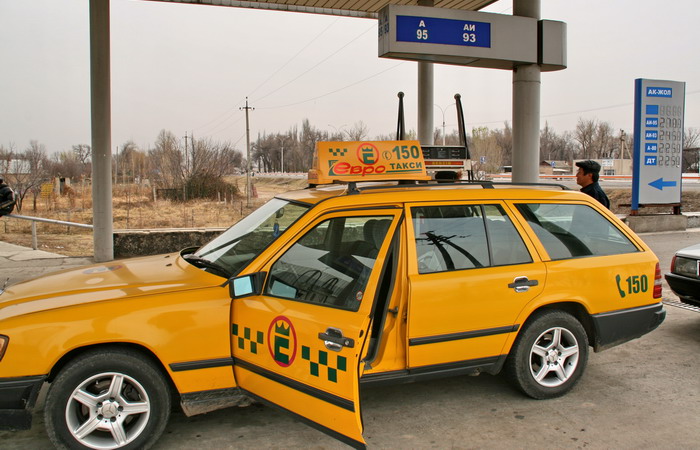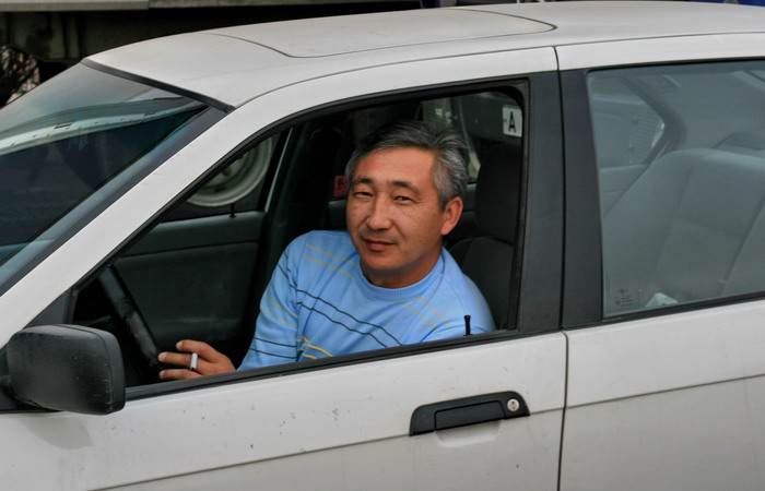 По территории суверенной Киргизии я на всякий случай решил ехать на такси. Выбрал старенький Мерседес с водителем-корейцем, звали его Сашей. После непродолжительной, но энергичной торговли он меня победил, и я согласился доехать до аэропорта за 350 сомов (250 рублей). Меня оправдывает то, что на стороне Саши в споре принимали участие еще несколько киргизских таксистов, хором певших, что это такой тариф, что всегда за такие деньги возят и т.п. В Бишкек мы не заезжали, ехали в аэропорт Манас по объездной, пустынной трассе.