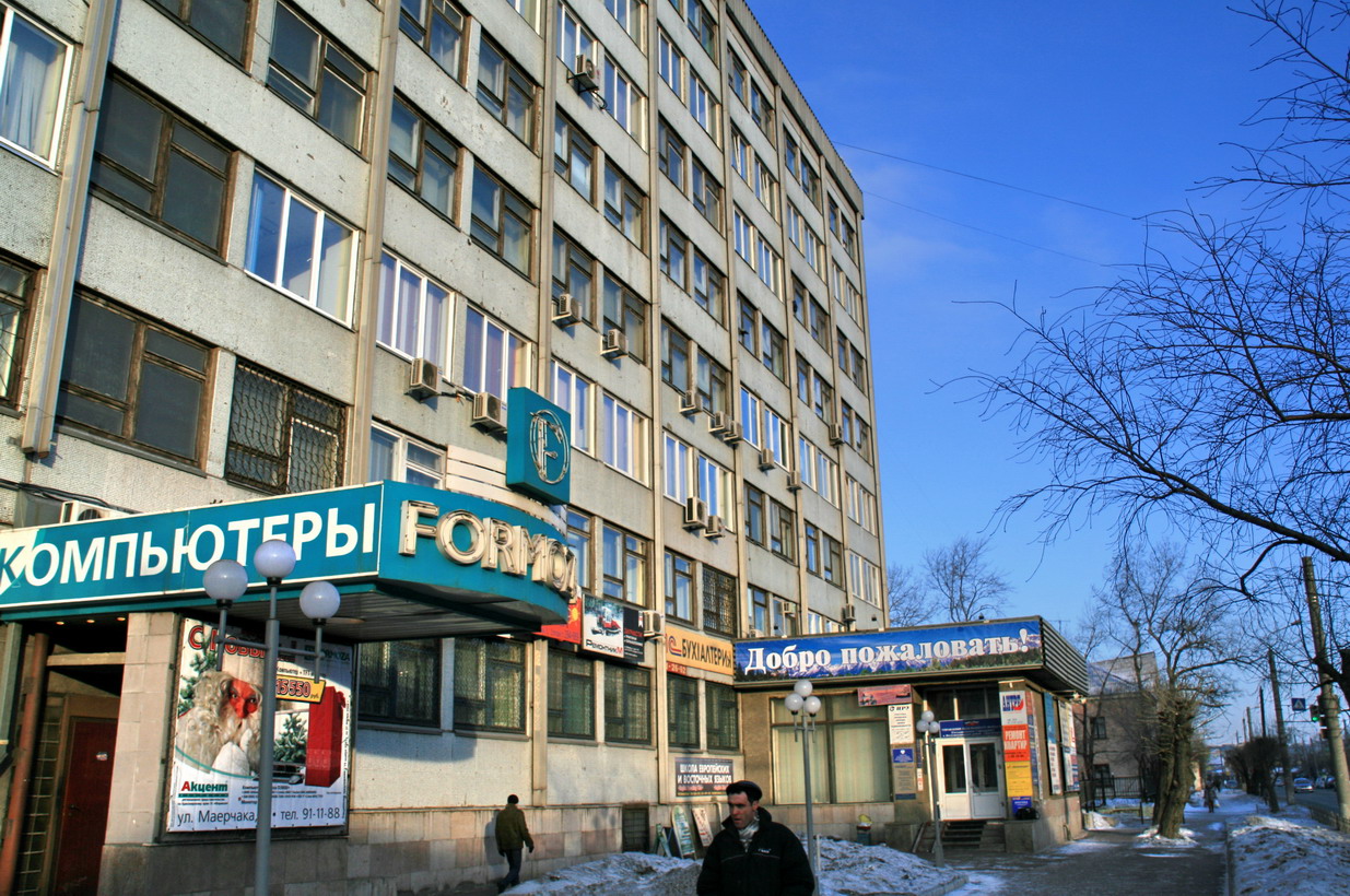 «Институт экономики» в переводе на привычный мне язык это просто экономический факультет. Поскольку Сибирский Федеральный Университет в Красноярске находится на этапе становления, все его Институты-факультеты разбросаны по городу и слабо связаны организационно. Например, «Институт экономики», куда мы приехали, занимает два этажа в здании по адресу ул. Маерчака, 3. Это обычное офисное здание класса «Г», внешне и внутренне очень похожее на наше здание по адресу ул. Семьи Шамшиных, 99. Такие халабуды советской постройки обычно принадлежат нескольким хозяевам, от души урёпаны разномастной рекламой и выглядят одновременно нарядно и ветхо, как бабушкино лоскутное одеяло. Кстати, адреса зданий тоже близки между собой по смыслу. Виктор Маерчак это красноярский революционер, а семейство Шамшиных занималось антиправительственной агитацией среди новониколаевских рабочих.